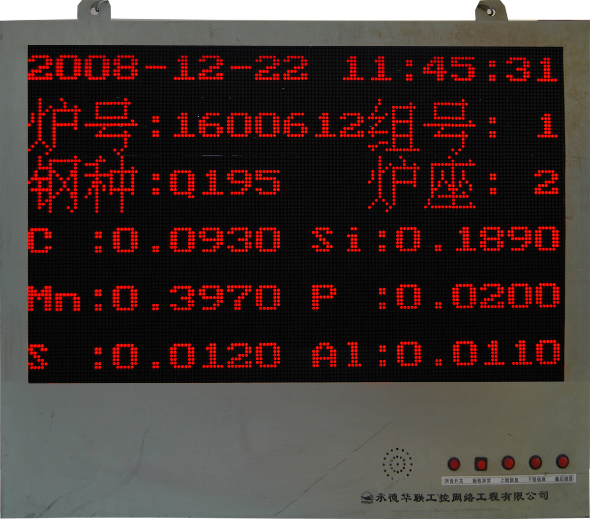 HL系列点阵字屏,采用工业级的芯片设计,电路上充分考虑了强电磁干扰,增加了抗干扰及断电自恢复能力,特别适合于冶金、矿山、交通运输、银行等场所,为管理者提供调度指挥、指令、现场监控及发布等信息。